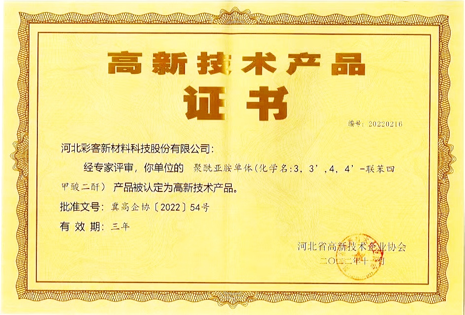 BPDA主要用于特種材料聚酰亞胺的生產(chǎn),聚酰亞胺具有突出的耐溫性能和優(yōu)異的機械性能,是目前已知耐熱性能最好的可實際大規(guī)模使用的聚合物材料,廣泛應用于航空航天、電氣絕緣、柔性顯示、新能源、微電子等新興領域。